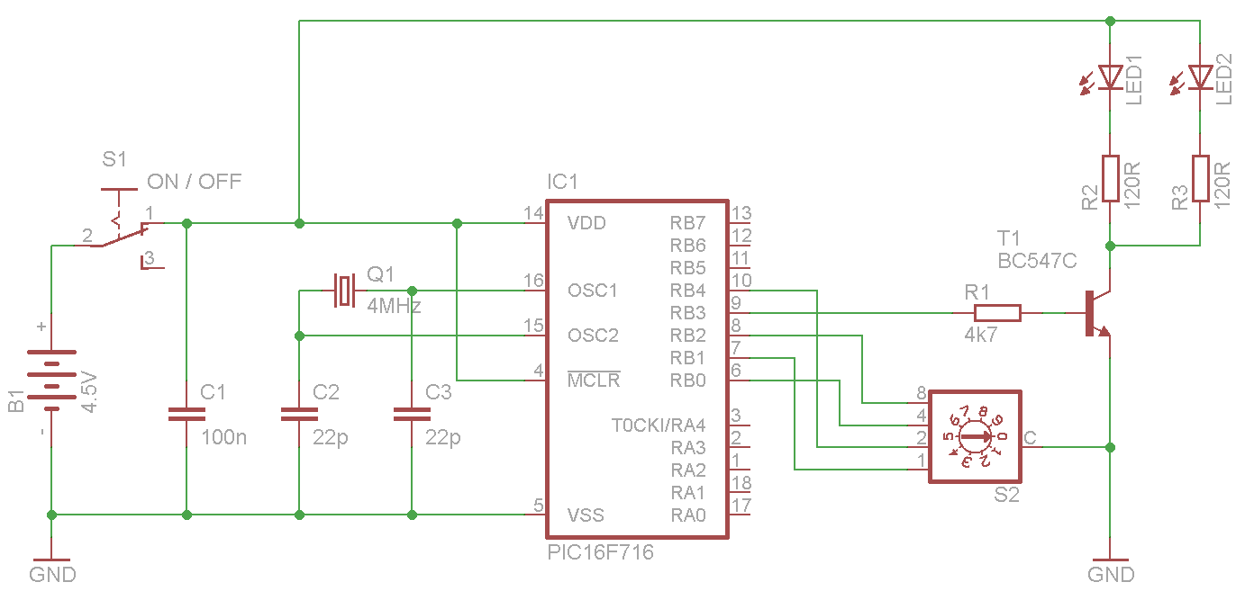 Hier ist nun der Schaltplan der elektronischen Kerze zu sehen: