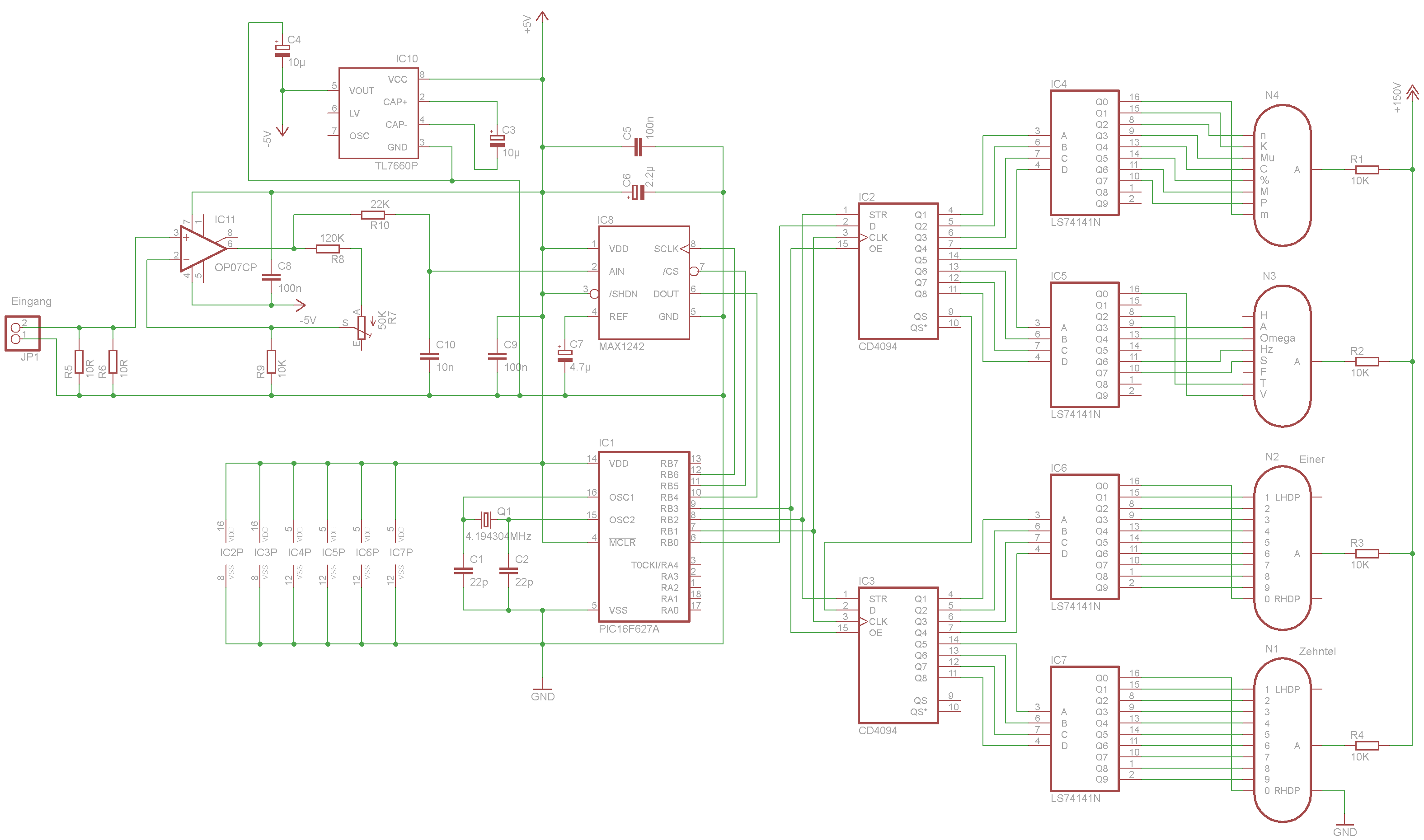 Das 1363 stellt in meiner Schaltung die benötigten 150V zur Verfügung, daher habe ich es im folgenden Schaltplan auch nicht weiter eingezeichnet: