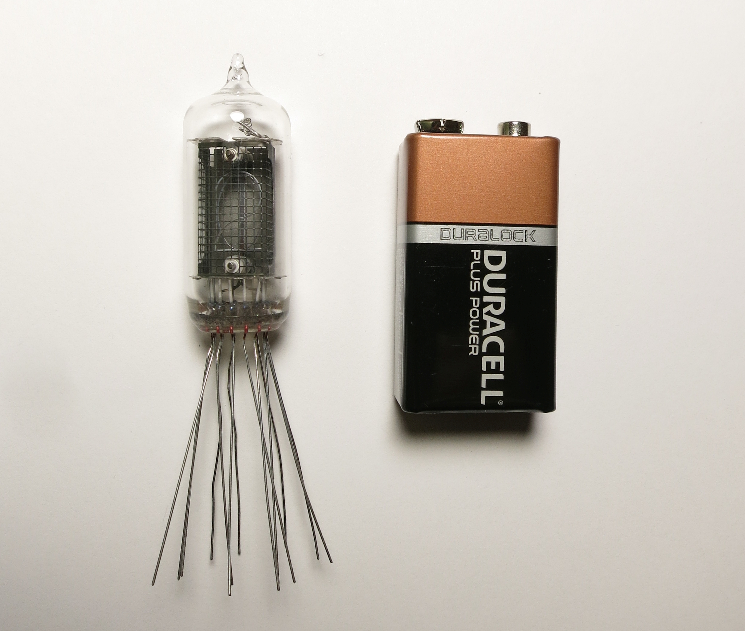Die TAF1267A vom französischen Hersteller Thomson CSF ist eine 13mm-Ziffernröhre, der auch die TAF1317A (oder die F9080BA) angehört. Hier ist sie im Größenvergleich zu sehen: