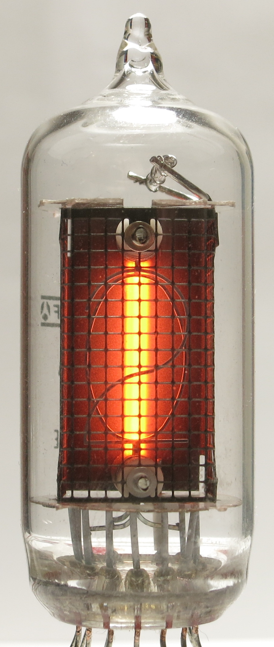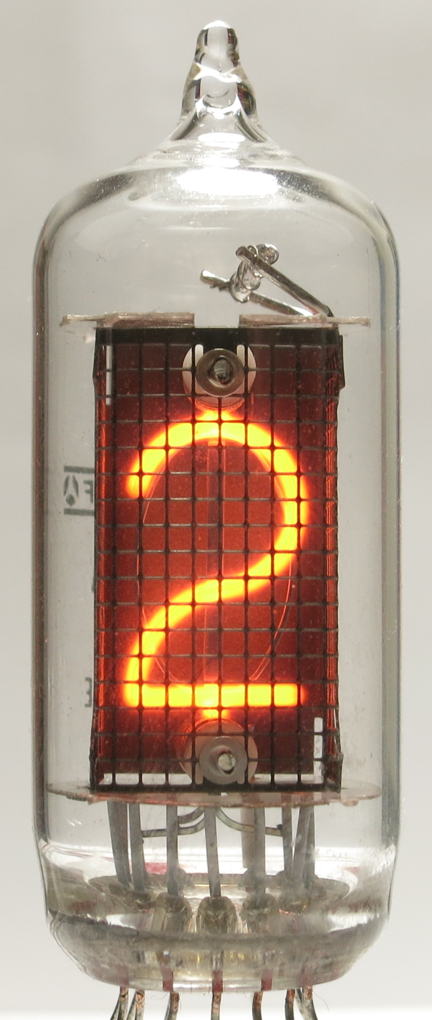 Die TAF1267A ist eine Ziffernröhre, zeigt aber nur die Ziffern 0, 1, und 2 an. Vermutlich diente sie zur Anzeige von Zehnerstellen (oder Hunderterstellen, usw). Hier ist ihr Leuchtbild zu sehen:
