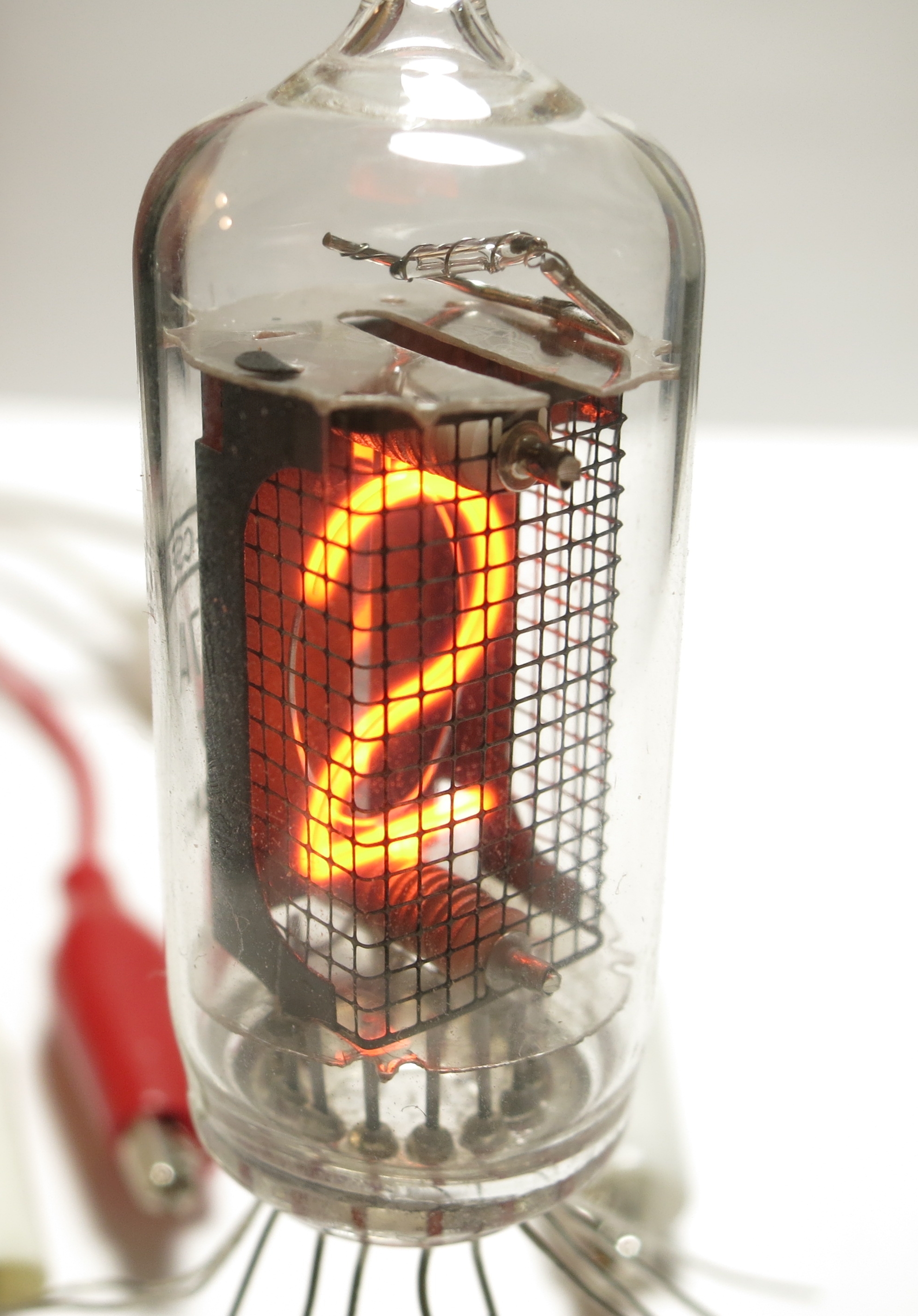 The TAF1267A is a numeric tube, but it only displays the digits 0, 1, and 2. Most likely it was used to display the tens (or hundreds, and so on). Here you can see the glowing display: